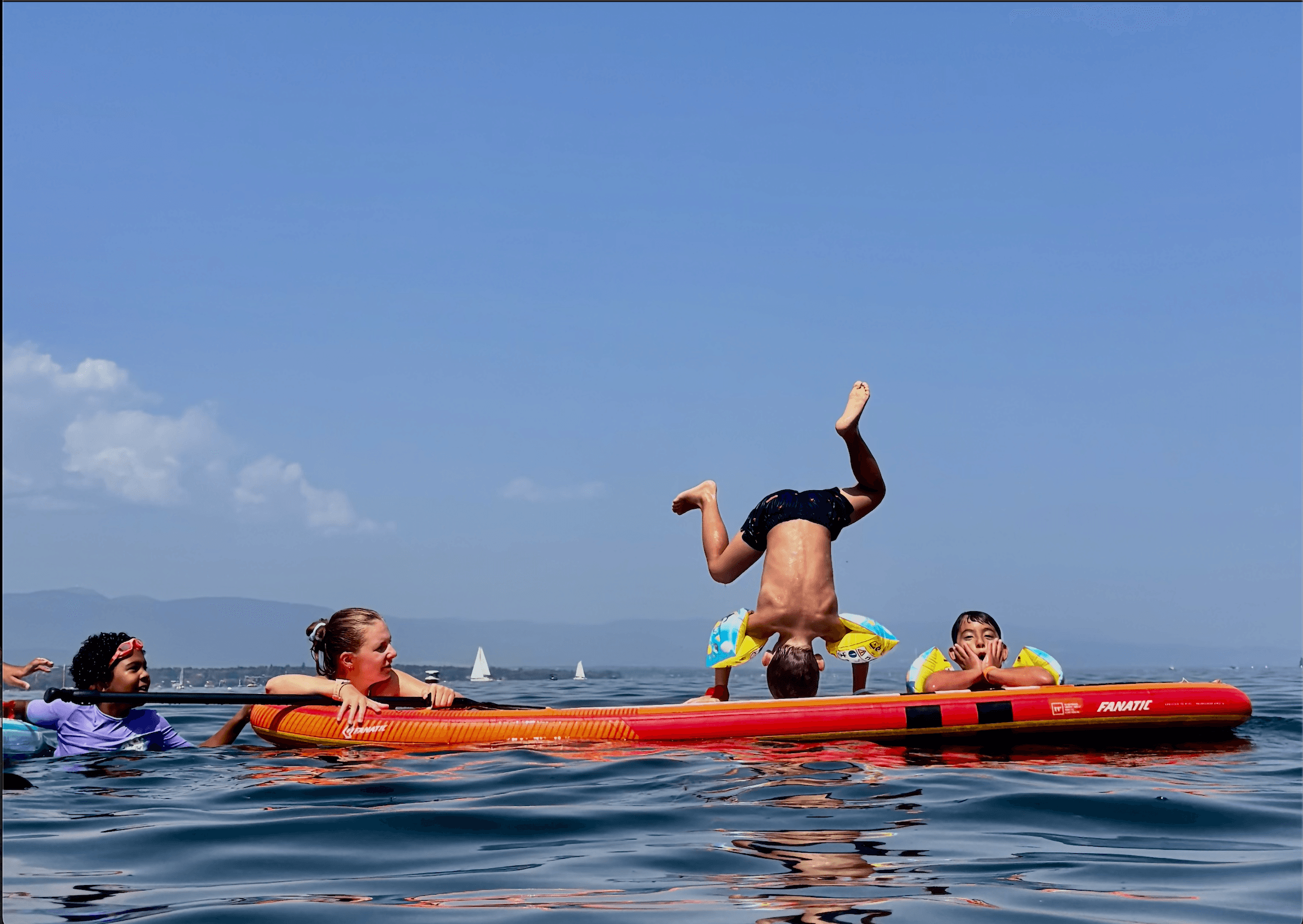 La sécurité de nos participants est une priorité centrale. Les enfants sont répartis en deux groupes qui alternent entre les activités aquatiques et les activités terrestres, ce qui permet à chaque moniteur de maintenir un suivi proche et attentif de son groupe. Nos moniteurs sont formés au sauvetage aquatique par la Société Suisse de Sauvetage (SSS) et notre structure est reconnue conforme à la charte de qualité genevoise. Nous mettons tout en œuvre pour offrir un environnement sûr.